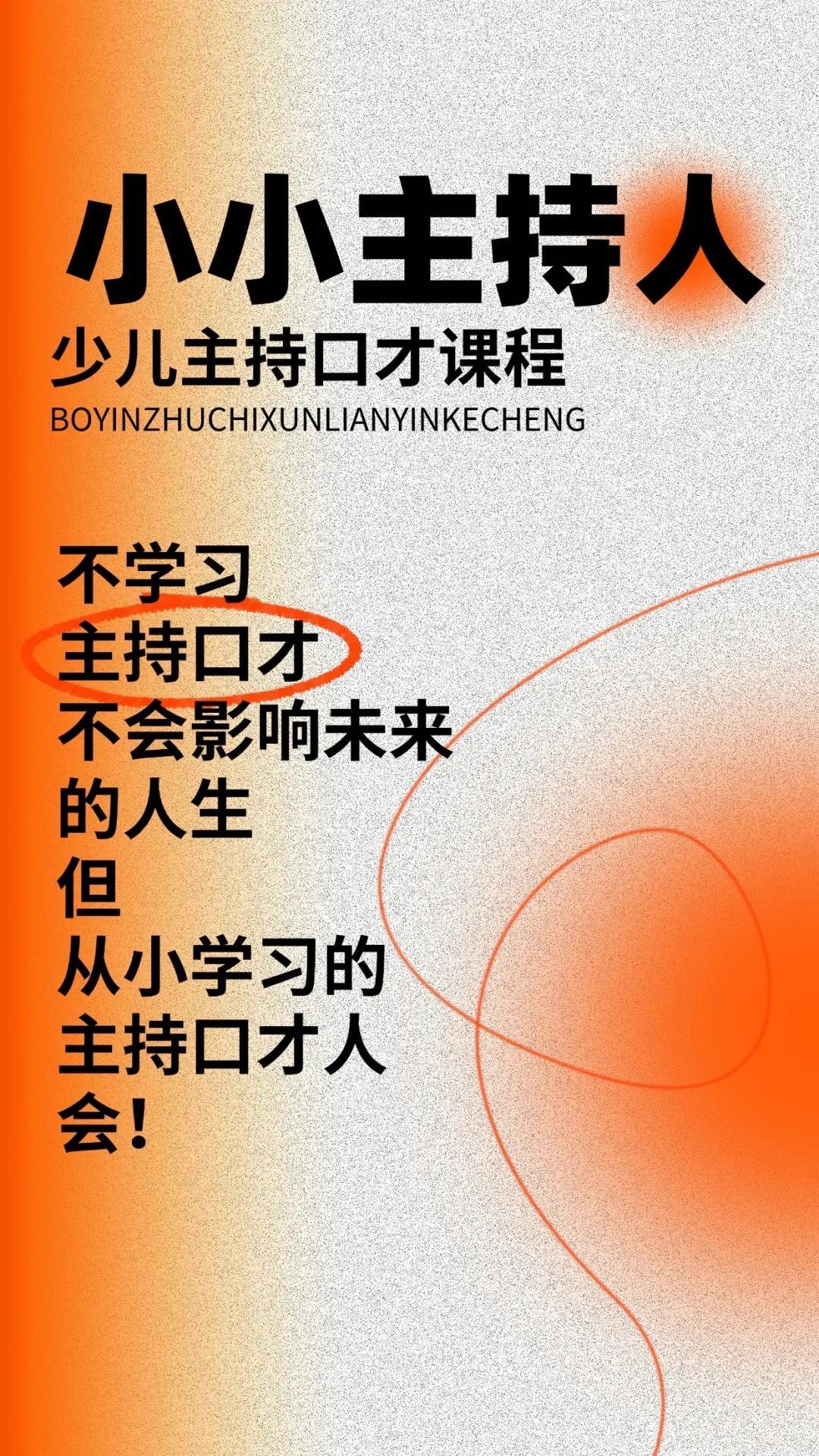 少儿主持口才课基于儿童语言表达特点,由专业老师进行指导,教会孩子能清楚地进行简单讲述及复述某件事情,朗诵文章自由表达,读音标准,说话流畅,表达具有逻辑性。让孩子增强自信心,能敢于当众说话、用词准确,乐于与人交谈,想象力和逻辑思维能力得到进一步提高,帮助孩子在主持中建立自信,提高能力,掌握初步表演技巧。