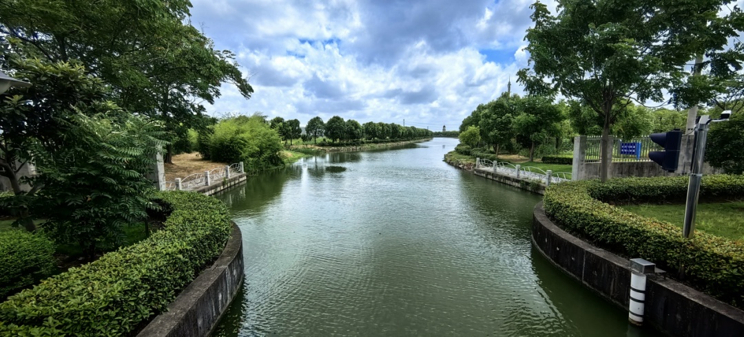 高梁泾泵闸和高梁泾水闸绿化面积共计2825.7平方米,通过设置清晰的标识标牌、定期清理管理范围内的河道漂浮物、精心进行绿化养护等,营造了良好的闸区环境。河道上清澈的河水与翠绿的河岸相得益彰,呈现出水清岸绿的美丽景象,水利设施与生态景观融为一体,充满生机与和谐之美。