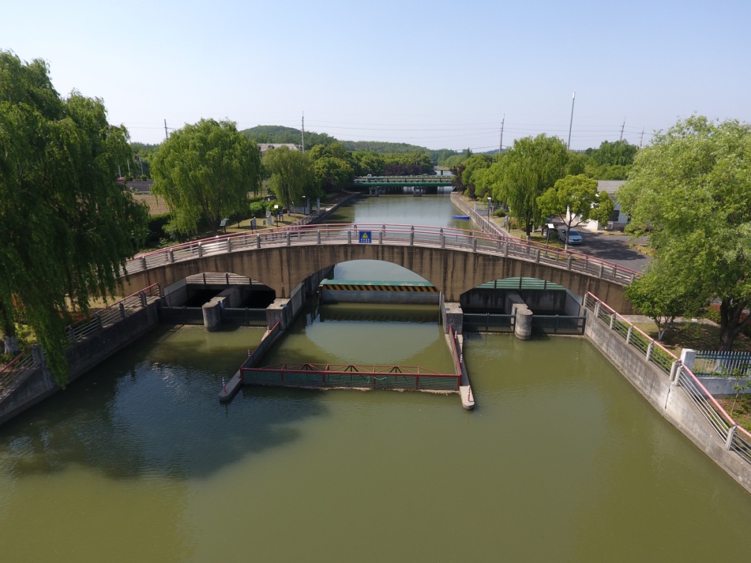 在松江佘山的生态版图上,高梁泾犹如一条翡翠玉带,蜿蜒串联起佘山月湖的潋滟清波与百花港的灵动水韵。高梁泾和百花港的交汇处,高梁泾泵闸和高梁泾水闸隔着河口相望,它们是区域防汛排涝的坚实屏障,也是水资源调度的智慧体现,更是松江水利现代化建设的生动缩影。