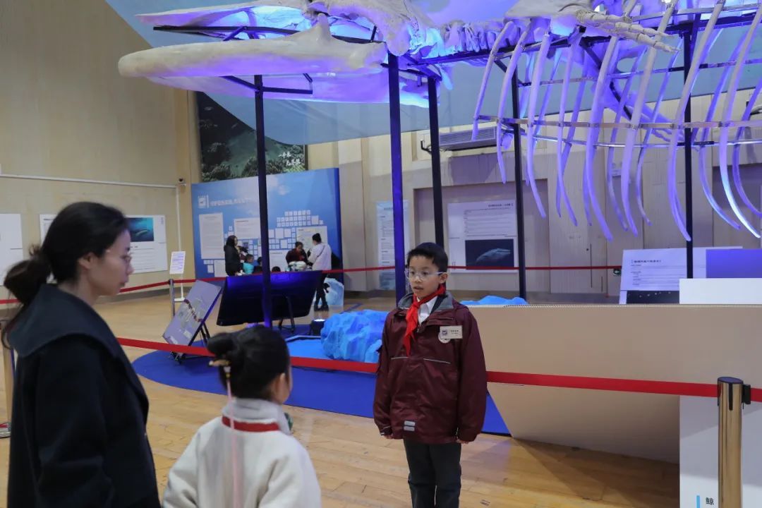 一位带孩子参观的家长高兴地说道:“这个一平米展馆真是创意十足,在家门口就能让孩子领略到如此丰富的海洋知识,孩子对海洋生物的热爱瞬间被点燃了!”学生们也纷纷分享着他们的感受:“以前只能在电视和博物馆里瞧见的长须鲸骨骼标本,现在自己看到了,以后我们要更加关注海洋的保护。”