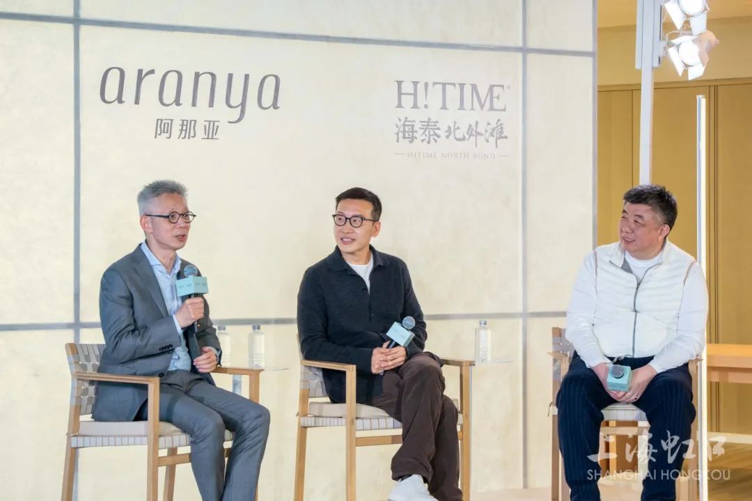发布会的重要环节:阿那亚创始人马寅,复旦大学知名学者、中国内地知名节目主持人蒋昌建和上海海泰房地产(集团)有限公司董事长丁劲松围绕“附近的远方——高品质的日常生活和艺术生活日常化”展开了一场精彩对谈。