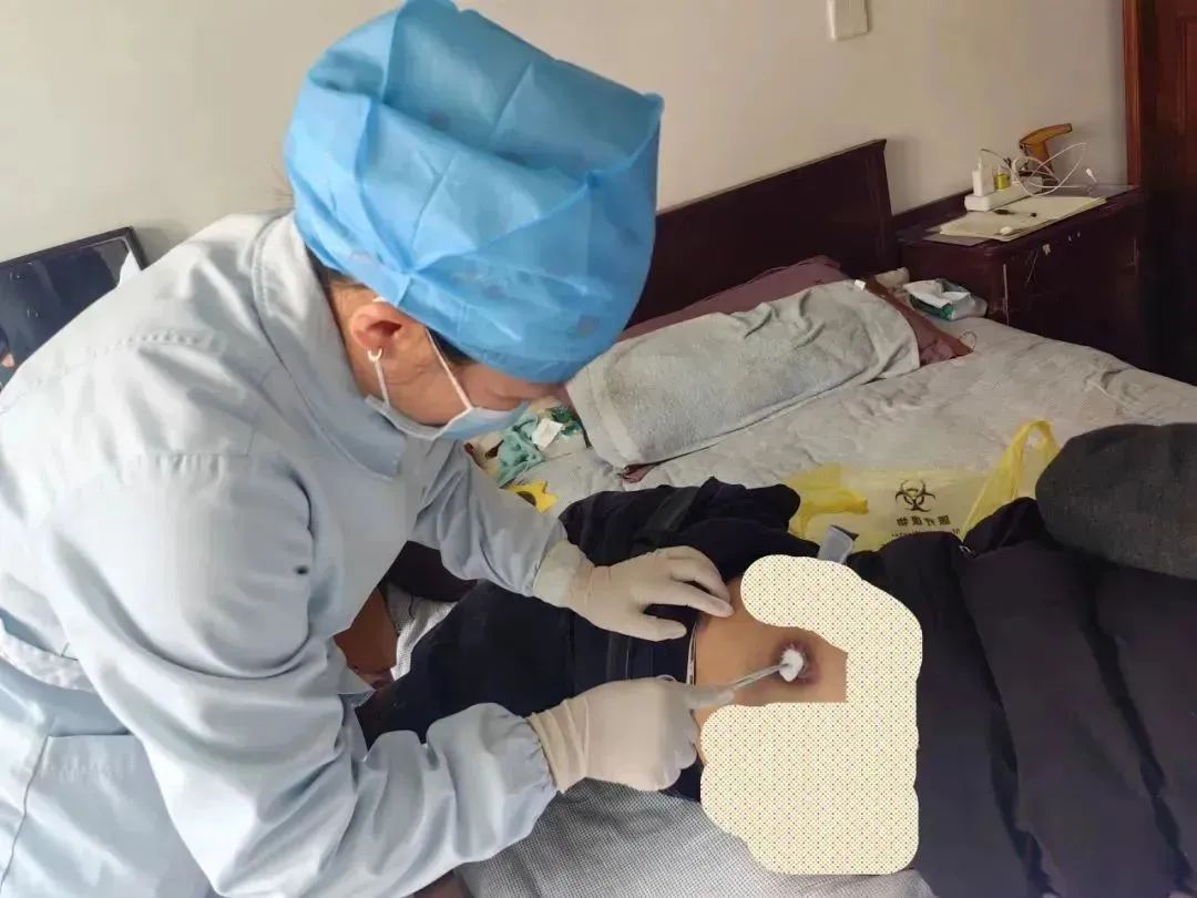 家庭医生团队的徐春雷和周芬芳医生得知潘爷爷的情况后,立刻为他办理了家庭病床服务,随后,与中心伤口团队的护士一同来到潘爷爷家。护理过程中,护士曹琼和王芝波严格按照专业规范,小心细致地为老人清理伤口、更换敷料,手法娴熟又轻柔,同时,耐心地讲解伤口护理的日常注意事项,安抚老人焦虑的情绪。经过近两个星期不间断的精心护理,潘爷爷的伤口终于愈合了。