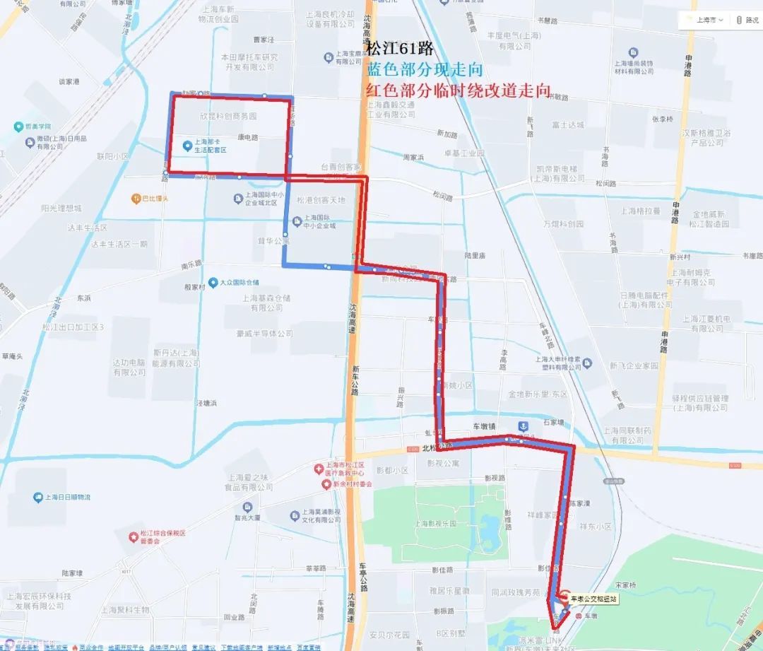 为配合车墩镇茸华路(南乐路—三浜路)段道路中修半幅施工,施工期间茸华路路幅较窄,公交车辆通行存在安全隐患,自2025年3月26日起至2025年8月10日期间(具体开始日期和结束日期以实际为准),上海松江公共交通有限公司经营的松江61路将实施临时绕改道,具体走向如下: