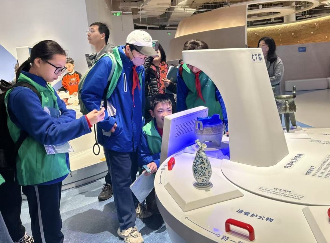 上周末,上海市钟山初级中学、虹口区红旗小学的部分学生家庭走进上海博物馆东馆,参加“跟着劳模去学习”家庭行之“科学+”亲子研学活动。
