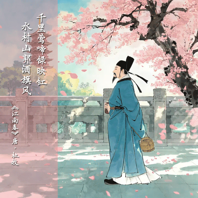 “千里莺啼绿映红,水村山郭酒旗风。”——《江南春》唐·杜牧