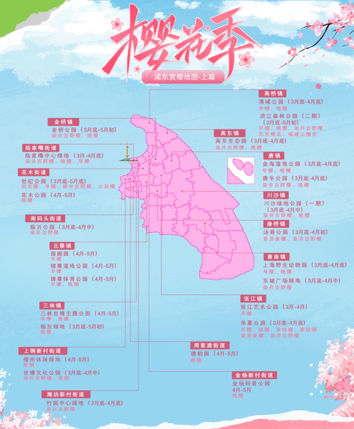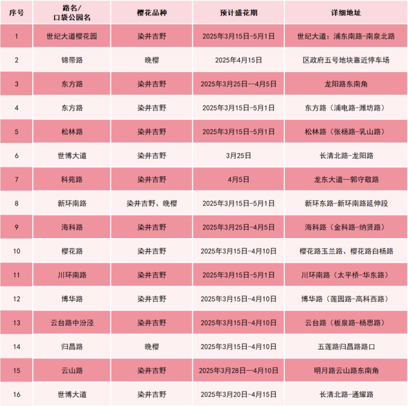 在浦东新区的街头走走停停,穿越城市道路和公园与樱花相遇,一起尽赏这春日烂漫吧。
