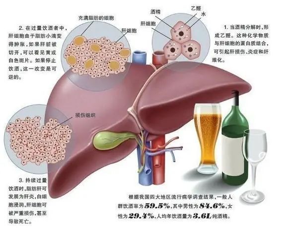 长期饮酒会对肝脏造成严重损害,主要包括以下几个方面: