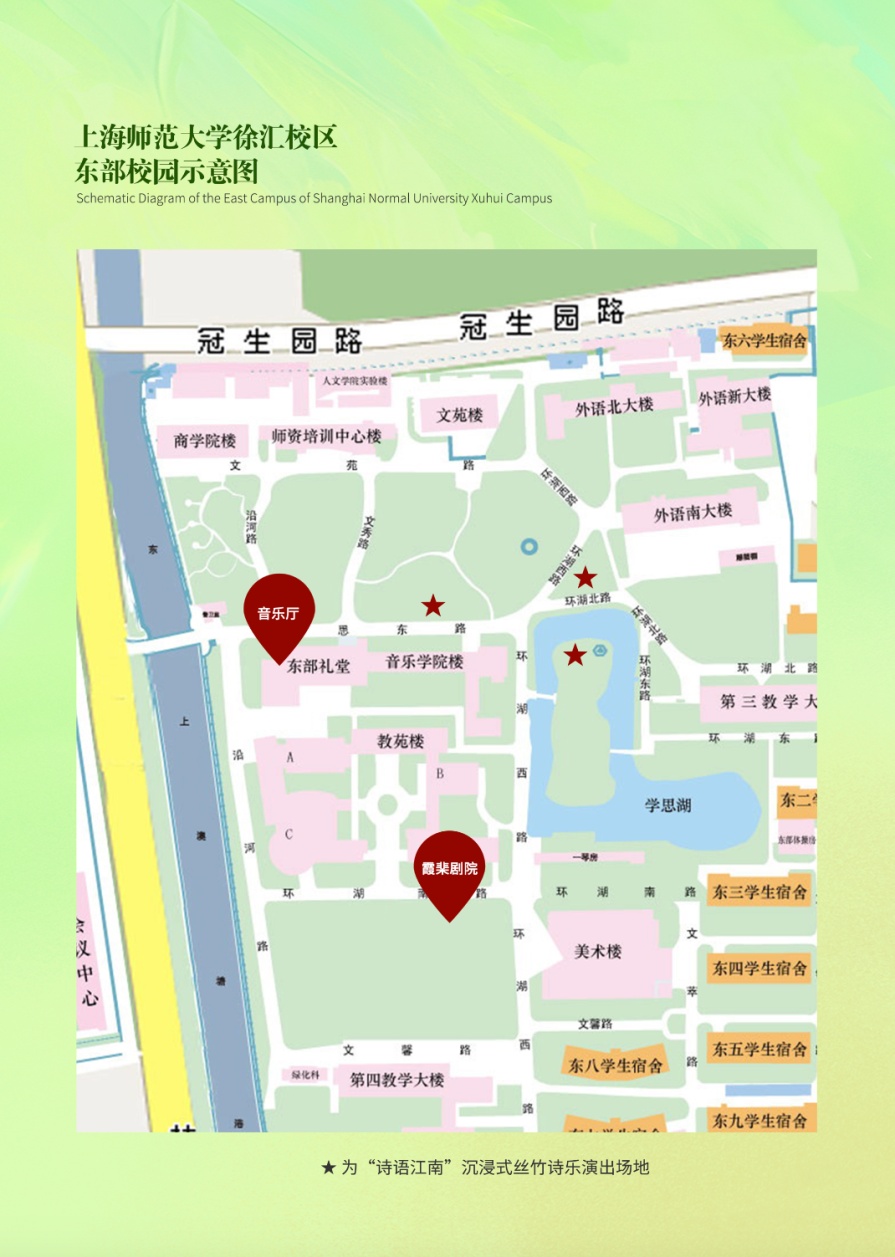 兑票地点:上海师范大学徐汇校区东部音乐厅/上海师范大学霞棐剧院(请注意您预约的演出对应的演出场地),推荐由东门进入校园。