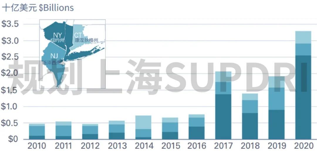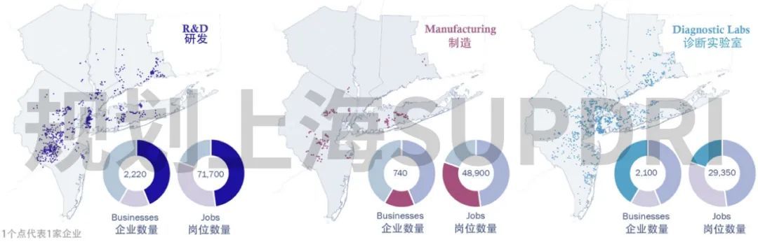 生命科学产业是现代科技创新的重要前沿领域,它不仅推动了科技的不断创新,也是全球经济增长的强大引擎。作为全球生命科学领域的领军者之一,纽约及纽约大都市区长期以来都处于这一行业的最前沿。特别是在新冠疫情期间,纽约大都市区成为了抗击疫情的核心地区,借助生命科学领域的创新,应对了百年来最严峻的公共卫生挑战。后疫情时代,为了推动经济复苏,纽约大都市区对生命科学产业的投入进一步加大。2022年6月,纽约市规划局和纽约市经济发展公司共同发布了《纽约大都市区生命科学行业的发展》(Life Sciences in the NYC Metro),该报告详细展示了纽约大都市区生命科学产业的规模、优势及其重要意义,深入分析了该地区生命科学产业蓬勃发展的背后逻辑,并强调了这一产业的广泛影响力及增长潜力。 顶级生命科学中心引领区域繁荣与创新 纽约大都市区以纽约市为核心,涵盖纽约州、新泽西州、康涅狄格州,共计31个县,是美国最大的经济引擎之一。2023年,该区域创造了2.6万亿美元的国内生产总值,贡献了美国经济总量的9.4%。作为全球科技创新最集中、最活跃的领域之一,生命科学1产业在区域经济中占据着举足轻重的地位,尤其是新冠疫情后,引领了纽约大都市区的经济复苏。 纽约大都市区的生命科学发展可以追溯至19世纪,当时哥伦比亚大学医学院、纽约大学医学院等在医学教育和基础生命科学研究方面逐渐崭露头角。20世纪上半叶,随着生物学和医学研究的进步,尤其是二战中青霉素的广泛使用和对其他药品的大量需求,以辉瑞、默克等制药企业为代表,生物医药和制药行业迎来了蓬勃发展。不同于顶尖高校和科研机构众多的波士顿/剑桥地区,也不同于拥有大量风险投资与生物技术企业的旧金山湾区,纽约大都市区以集聚众多大型跨国制药公司总部著称,成为美国乃至全球的制药产业中心。全球制药企业50强中,有6家总部位于该地区,其中强生、默克、辉瑞、百时美施贵宝排名前十。2023年,这6家企业的销售收入和研发投入分别占50强药企总量的24%和7%,拥有大量生物技术专利和明星药品,是纽约大都市区生物医药创新的主体。根据《基因工程与生物技术》(GEN)杂志的评选,纽约/新泽西生物制药集群连续10年位列全美十大生物医药集群的前5名。随着政策推动和技术的不断突破,纽约大都市区的生物技术企业数量逐年增加,形成了由传统制药企业和新兴生物技术企业组成的多元化生命科学集群,并从传统制药向数字健康与精准医学、再生医学与基因疗法等多领域发展。可以说,纽约大都市区是波士顿至罗利—达勒姆生命科学创新走廊的核心,是全美生命科学领域的领跑者之一,也是全球顶级生命科学中心之一。 纽约大都市区拥有最多的生命科学工作岗位和企业,工作岗位超过15万个,比第2名的旧金山湾区多27%;相关企业近5100家,比排名第2的波士顿都市区多30%。作为美国最大的劳动力市场,纽约大都市区还拥有最多的生命科学从业人员,总量达到8.3万人,比排名第2的波士顿都市区多2.7万人。尤其是在顶尖人才方面,纽约大都市区以占美国7%的人口,拥有美国12%的生物化学家和生物物理学家,以及10%的化学家。 美国主要都市区生命科学集群工作岗位数量 来源:《纽约大都市区生命科学行业的发展》 美国主要都市区生命科学集群企业数量 来源:《纽约大都市区生命科学行业的发展》 美国主要都市区生命科学集群从业者数量 来源:《纽约大都市区生命科学行业的发展》 纽约是纽约大都市区当之无愧的核心。纽约拥有深厚而多元的人才库、世界知名医学研究机构、强大的风险投资和初创企业生态系统、充足的商业实验室空间、全国最大的医疗保健网络等,在生命科学领域具有强大的竞争力,并且远超都市区内其他主要城市。根据2024年全球创新指数(GII)的统计,作为全球排名第11位的科技创新集群,纽约的专利申请和论文发表数量最多的领域即为生命科学,分别占34%和53%,产业创新转化优势较为明显。 区域分工推动研发、制造与诊断协同发展 纽约大都市区生命科学产业的成功不仅依赖于多年的积累,也离不开三州之间的区域协同和分工。按照行业的生命周期规律,生命科学可以分为上游研发、中游制造、下游应用诊断等3个环节,针对这3个环节纽约大都市区内形成了纽约研发,新泽西、长岛制造的产业分工格局,共同推动生命科学产业链的健康发展。其中,研发环节涵盖生物技术、纳米技术、医药等学科,聚集了最多的企业和工作岗位,分别占都市区总量的44%和48%。制造环节包括药品和医疗器械(如核磁共振成像仪、起搏器、助听器和假肢等)的生产,具有企业规模大、企业数量少、工作岗位多的特征,企业数量和工作岗位分别占所有企业和所有岗位的15%和33%。医疗和诊断测试实验室(以下简称“诊断实验室”)通常为医疗保健行业提供服务,因在统计时部分工作岗位与研发企业重叠,企业数量约占42%,但工作岗位最少,仅占所有岗位的20%。 纽约大都市区生命科学不同环节企业分布 来源:《纽约大都市区生命科学行业的发展》 研发是生命科学产业中价值最高的环节,纽约大都市区研发工作岗位接近生命科学工作岗位总量的一半,但研发人员工资占生命科学行业从业者工资的近63%,并且研发岗位的平均工资是制造岗位的3倍以上,是诊断岗位的6倍。在空间布局上,