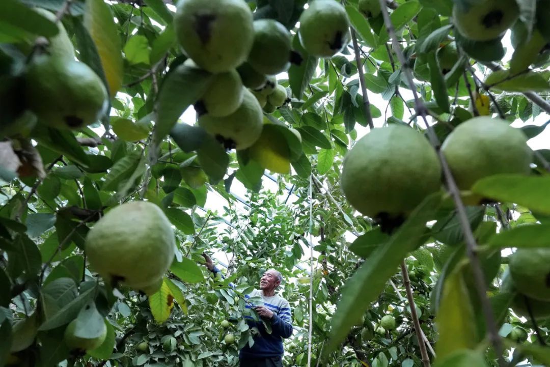 河北省秦皇岛市海港区北港镇一家庭农场的工人在管护芭乐