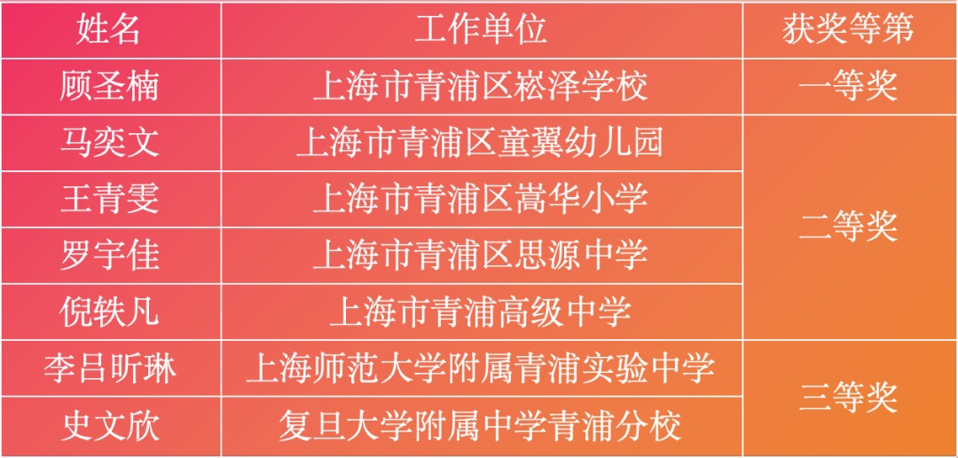 2024年上海市中小学(幼儿园)见习教师基本功大赛获奖名单(青浦区)