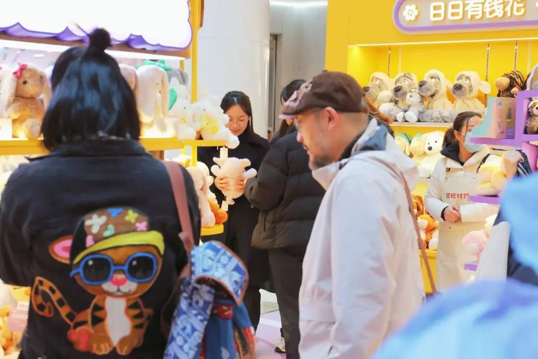 快闪店内,消费者不仅可与小黄豚毛绒玩偶“喝茶”、合影打卡,还能购买到各种可爱的小黄豚周边产品,让“情绪价值”拉满。