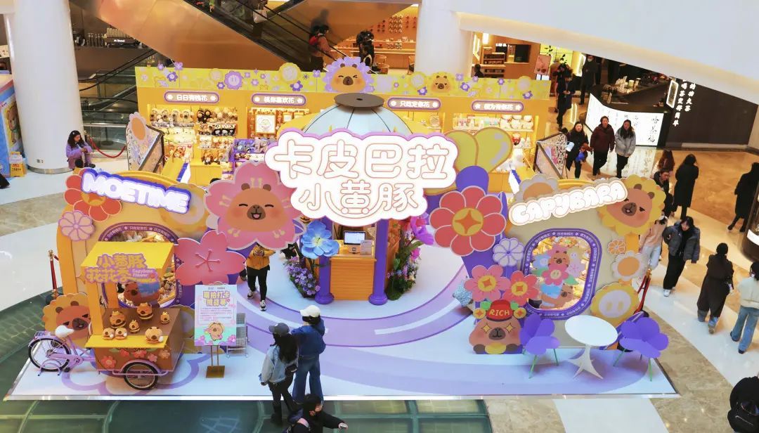 据悉,本次展览是卡皮巴拉小黄豚与疗愈品牌萌玩时代首次联名的线下活动,以春天和梦幻为主题,在宏伊广场中庭打造了一个法式浪漫花园,希望给消费者带来一个舒缓浪漫的体验。