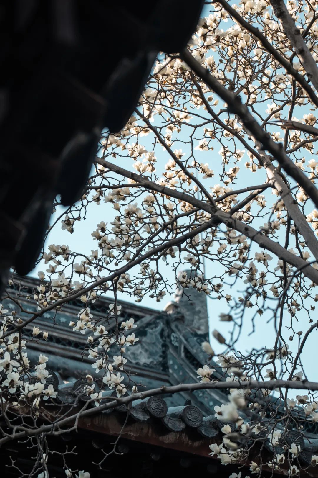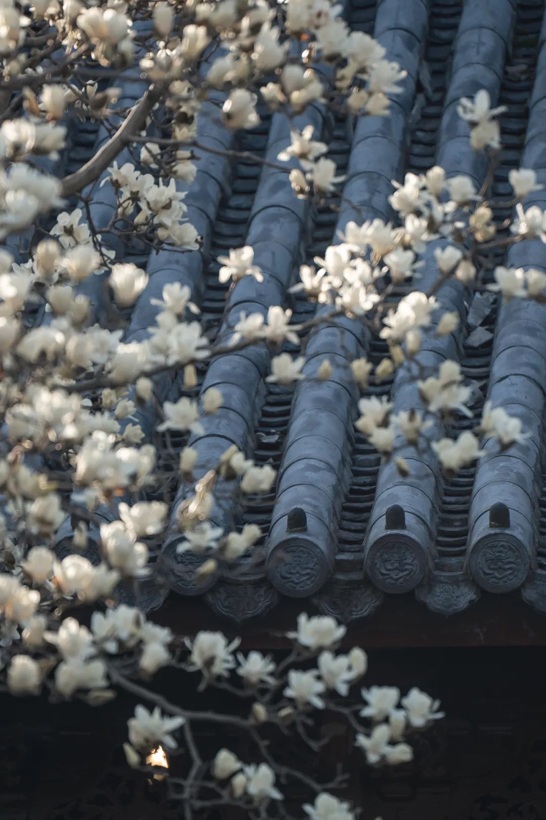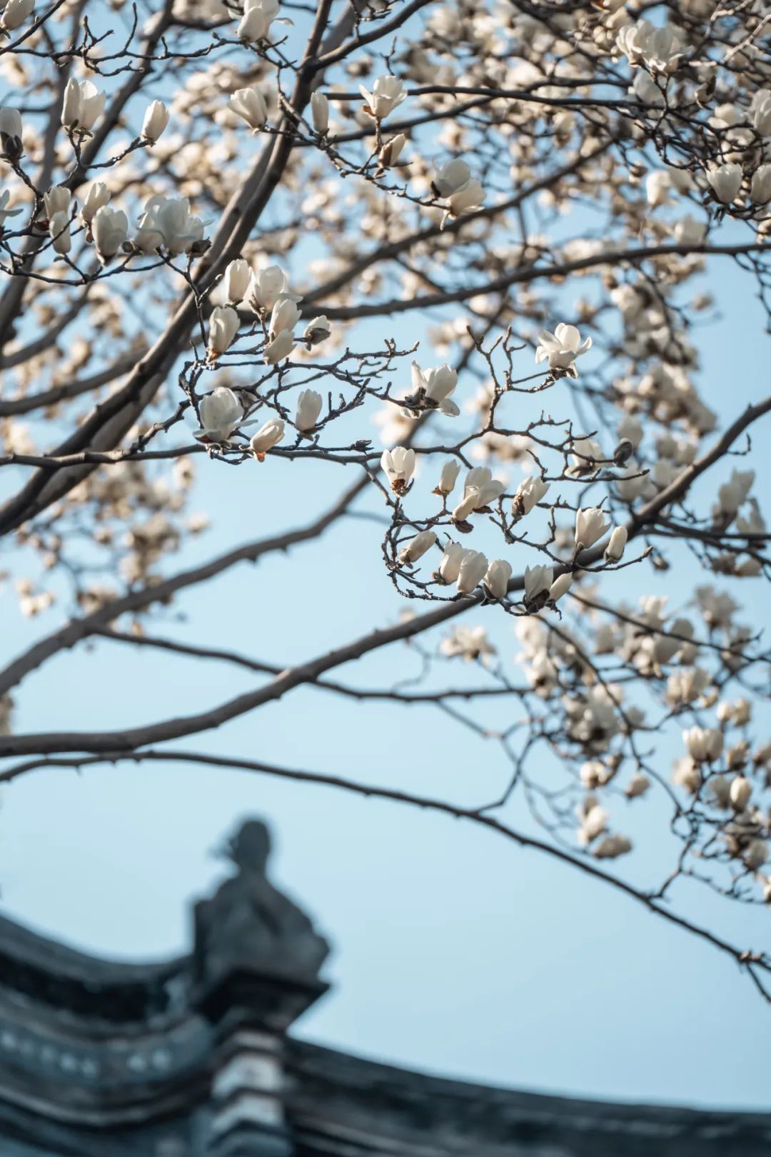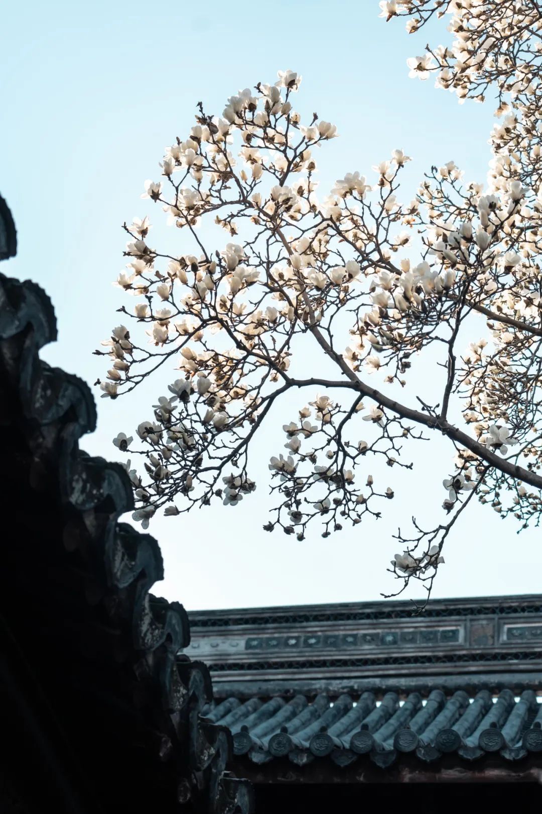 美翻了!古韵与春意交织,秋霞圃白玉兰盛放
