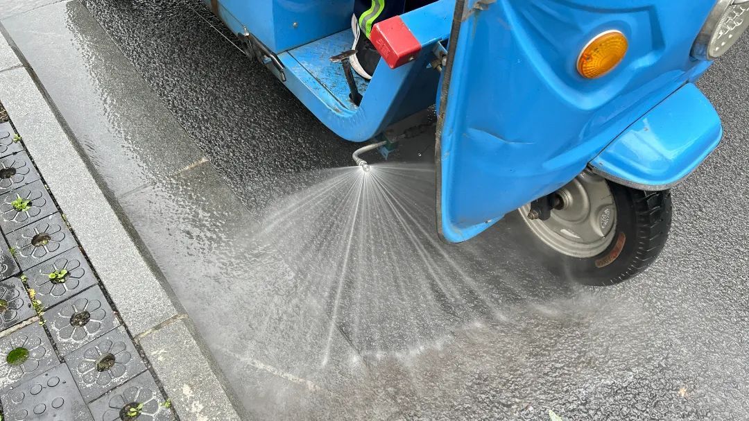 此前,针对市民反映的三轮冲洗车水雾溅射问题,东虹公司的环卫工人们集思广益,进行了三轮技术改进。最终通过改动冲洗机水泵分压装置和高压管方向,将斜冲改为排冲,在保证作业质量的同时,最大程度减少对市民的影响。