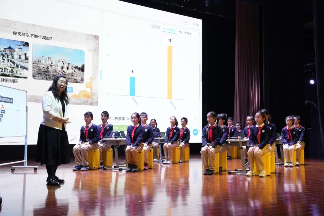思政课程、课程思政和开门办思政课作为“大思政课”建设的三大核心支柱,得到了更加深入和广泛地探索。新普陀小学东校现场展示了一堂以“圆明园的诉说”为主题的思政微课,引导学生在开放性问题的探讨和思维导图的绘制中升华爱国情感;甘泉外国语中学以“融学科育人与思政铸魂的河流课堂”为题从背景分析、路径探索、实践启示三个方面呈现了课程思政的魅力与活力;曹杨第二中学通过诉说团队在四季田园里的实践叙事,诠释了“教育不能把最基本的东西丢掉。”