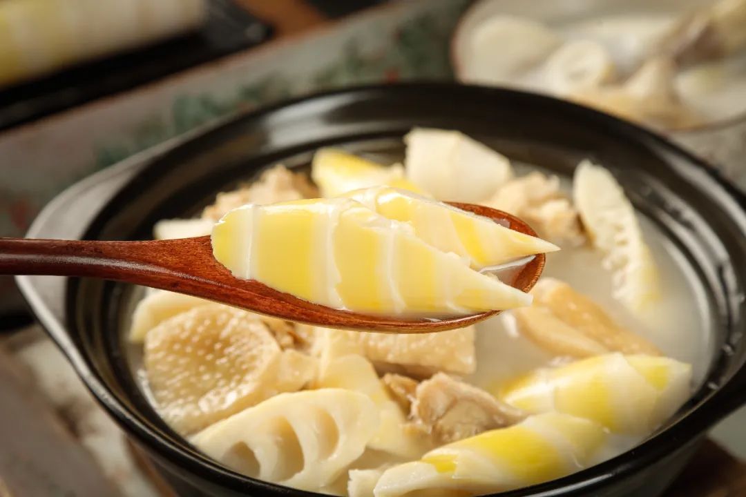 建议春笋与肉类一起长时间炖煮,可进一步充分灭活蛋白酶抑制剂,同时肉类中的饱和脂肪酸能软化纤维素,使春笋口感更佳;