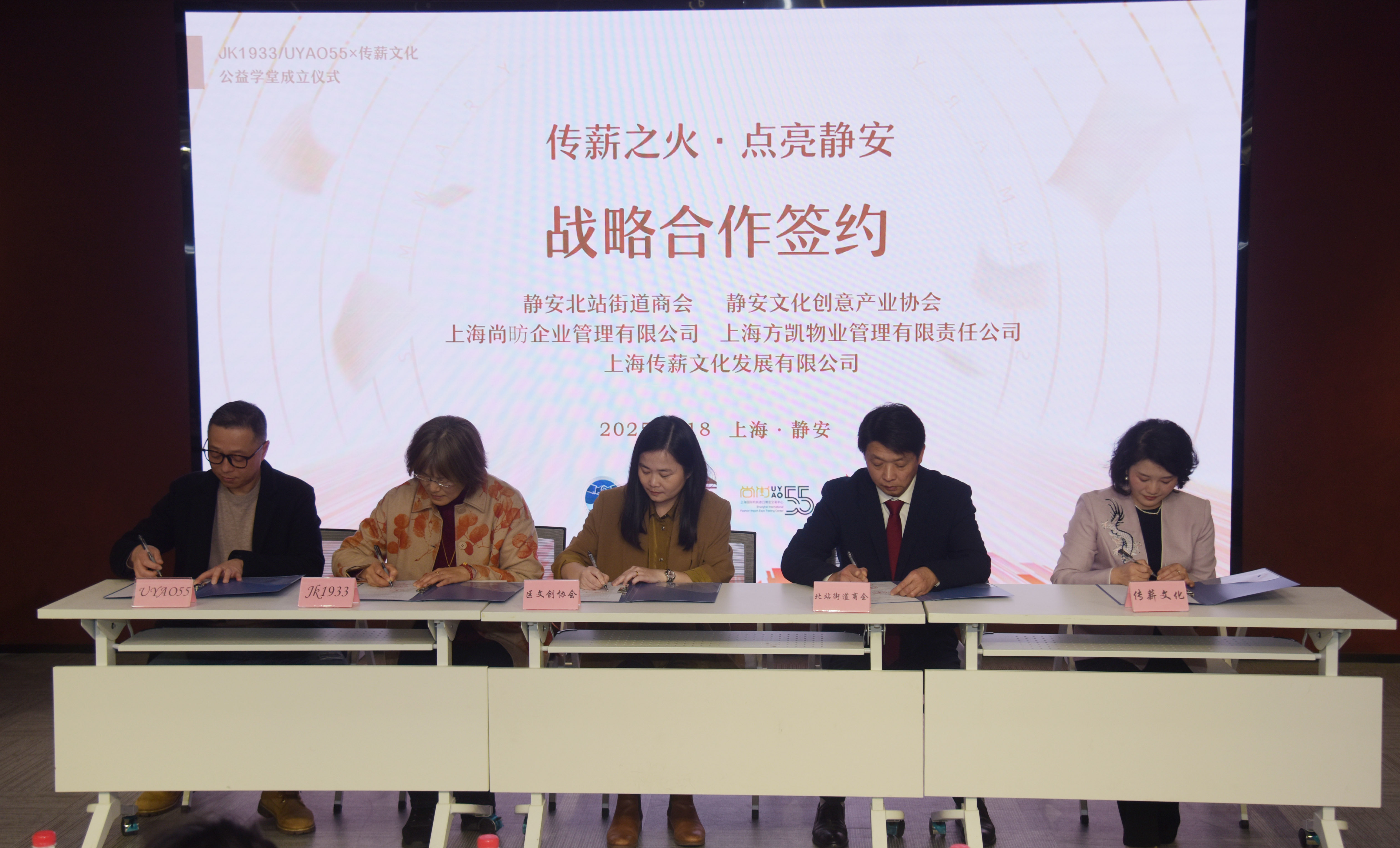 3月18日,以“传薪之火·点亮静安”为主题的JK1933/UYAO55×传薪文化公益课堂在北站街道社区党群服务中心正式成立,开启了辖区“政、企、文、社”四方联动,助力优化营商环境的新起点,这也是区工商联和基层街道商会探索以文化赋能企业,深度融合文化资源与产业发展的新举措。