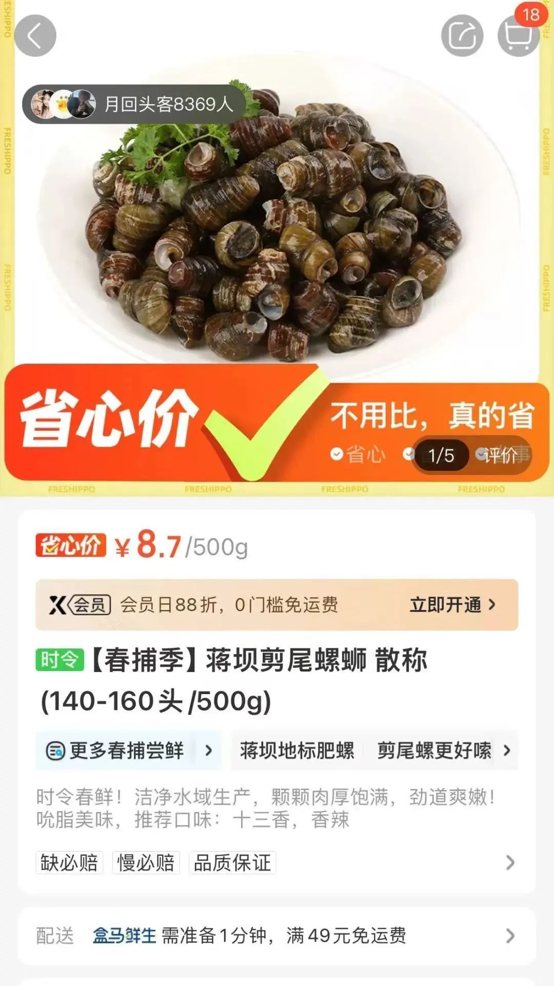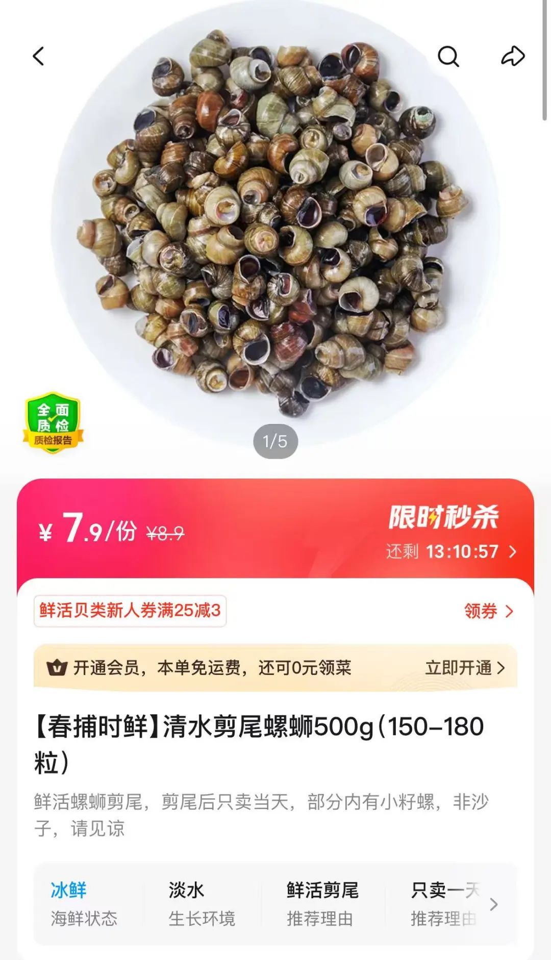 清水剪尾螺蛳则售价7.9元/斤