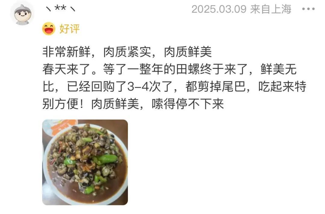 这个肉是肥的,比较干净,吃上去口感好又鲜,十块钱一斤,也不贵。放油里炒一下,香葱老姜,口感鲜,螺蛳很吊味,很好吃。