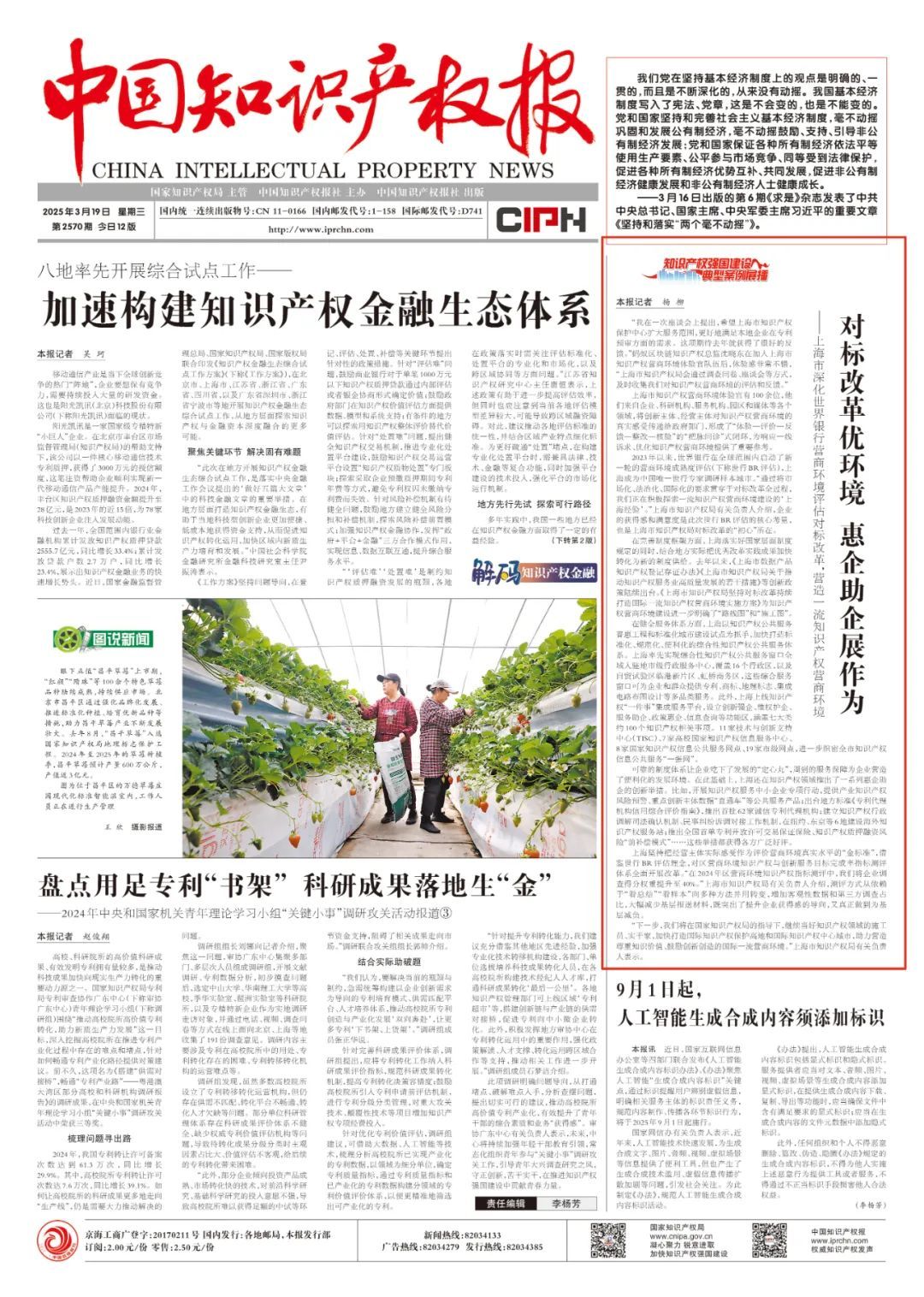 “下一步,我们将在国家知识产权局的指导下,继续当好知识产权领域的施工员、实干家,加快打造国际知识产权保护高地和国际知识产权中心城市,助力营造尊重知识价值、鼓励创新创造的国际一流营商环境。”上海市知识产权局有关负责人表示。(本文刊于2025年3月19日中国知识产权报01版 记者:杨柳)