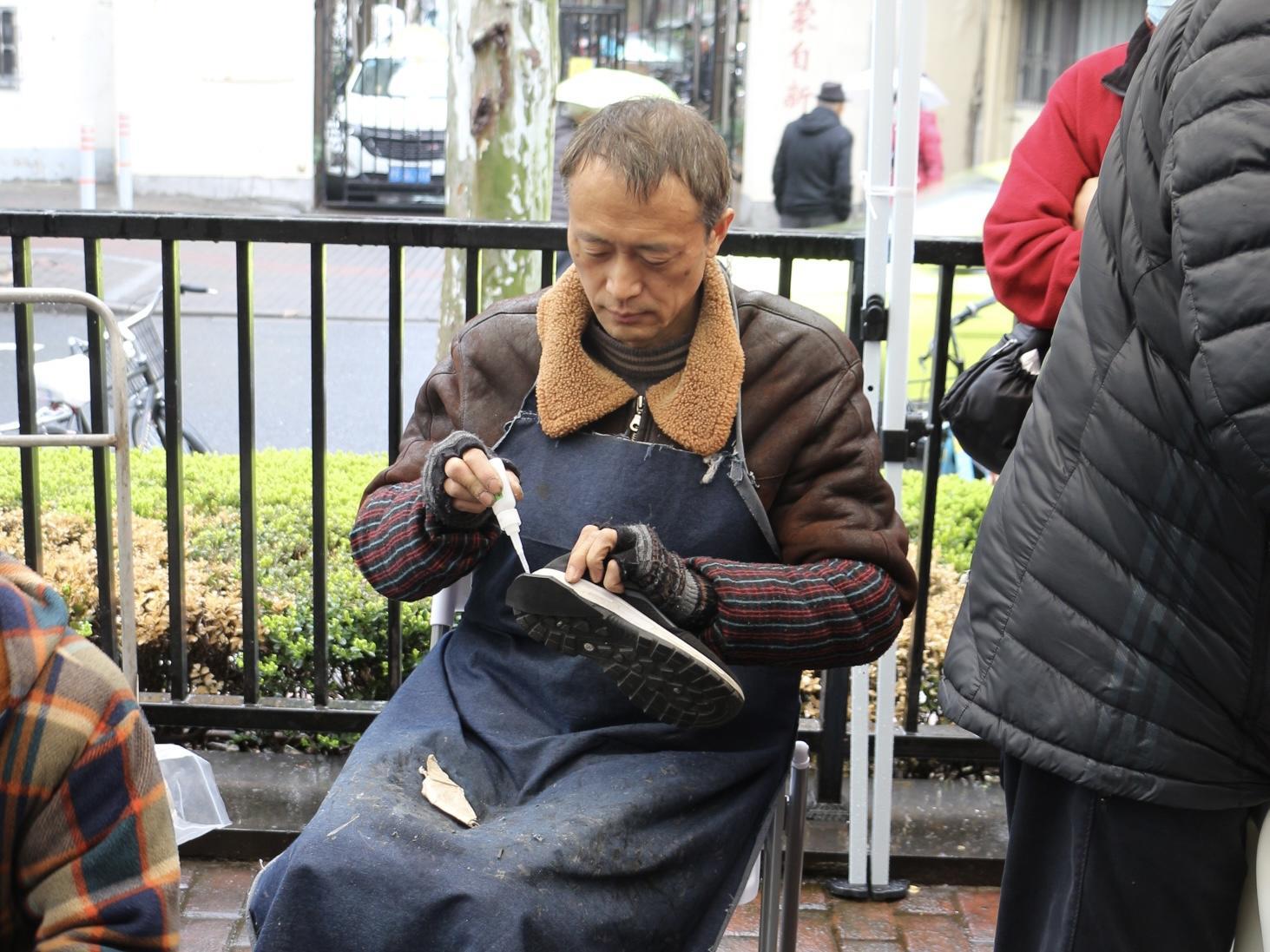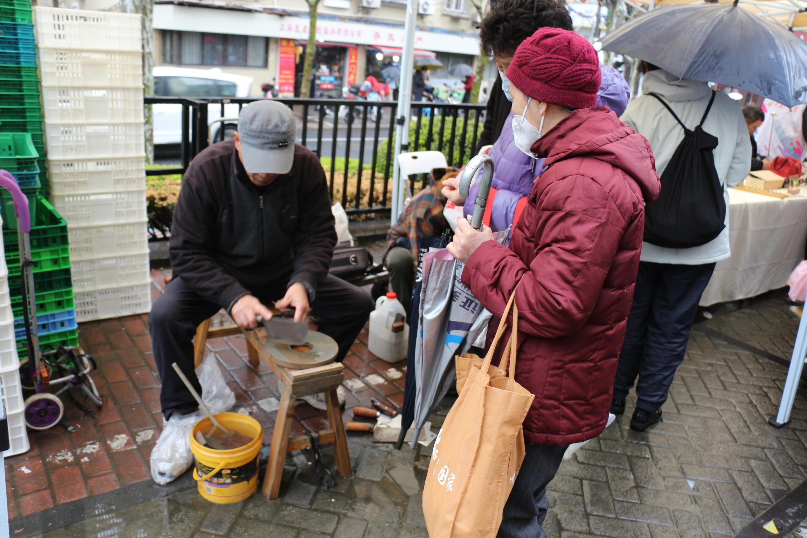 集市上的“明星服务”当数小修小补:磨刀、修鞋、修伞、缝纫、钟表维修……师傅们认真又娴熟地施展技艺,每个摊位前都早早排起了长队。“老年人总是希望趁手的物件能多用几年,但现在市面上的这类服务越来越难找。”磨刀摊位的周师傅表示,“老人需要我们这些手艺人,能为他们服务我们心里也踏实。”