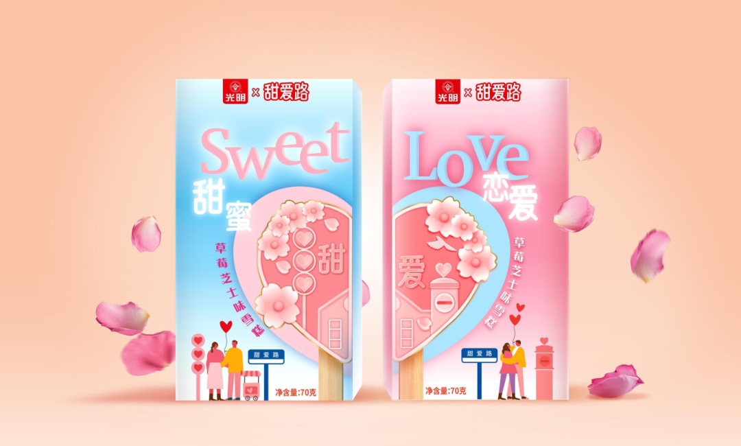 心冻时刻:光明携手甜爱路,邀您共赴一场甜上加甜的冰淇淋之约!清甜草莓邂逅醇厚芝士,交织出层次丰富的口感,每一口都是春天的味道。更特别的是,雪糕还融入了甜爱路的标志性元素,连形状都充满爱意。