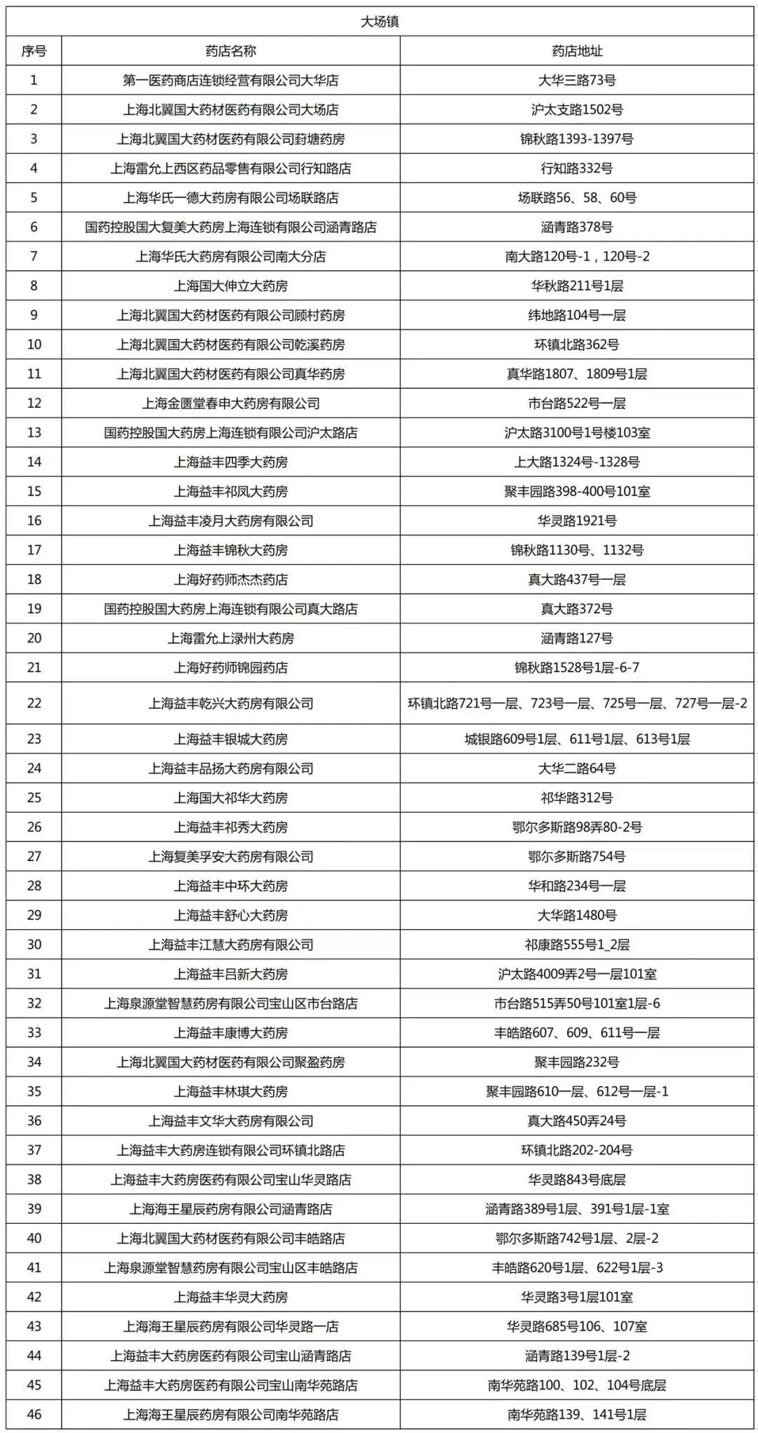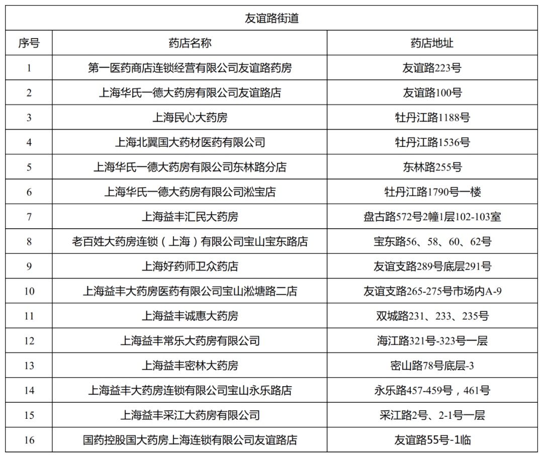 截至2025年3月13日,宝山区域内医保定点药店机构数达259家,以下信息按街镇分布排列: