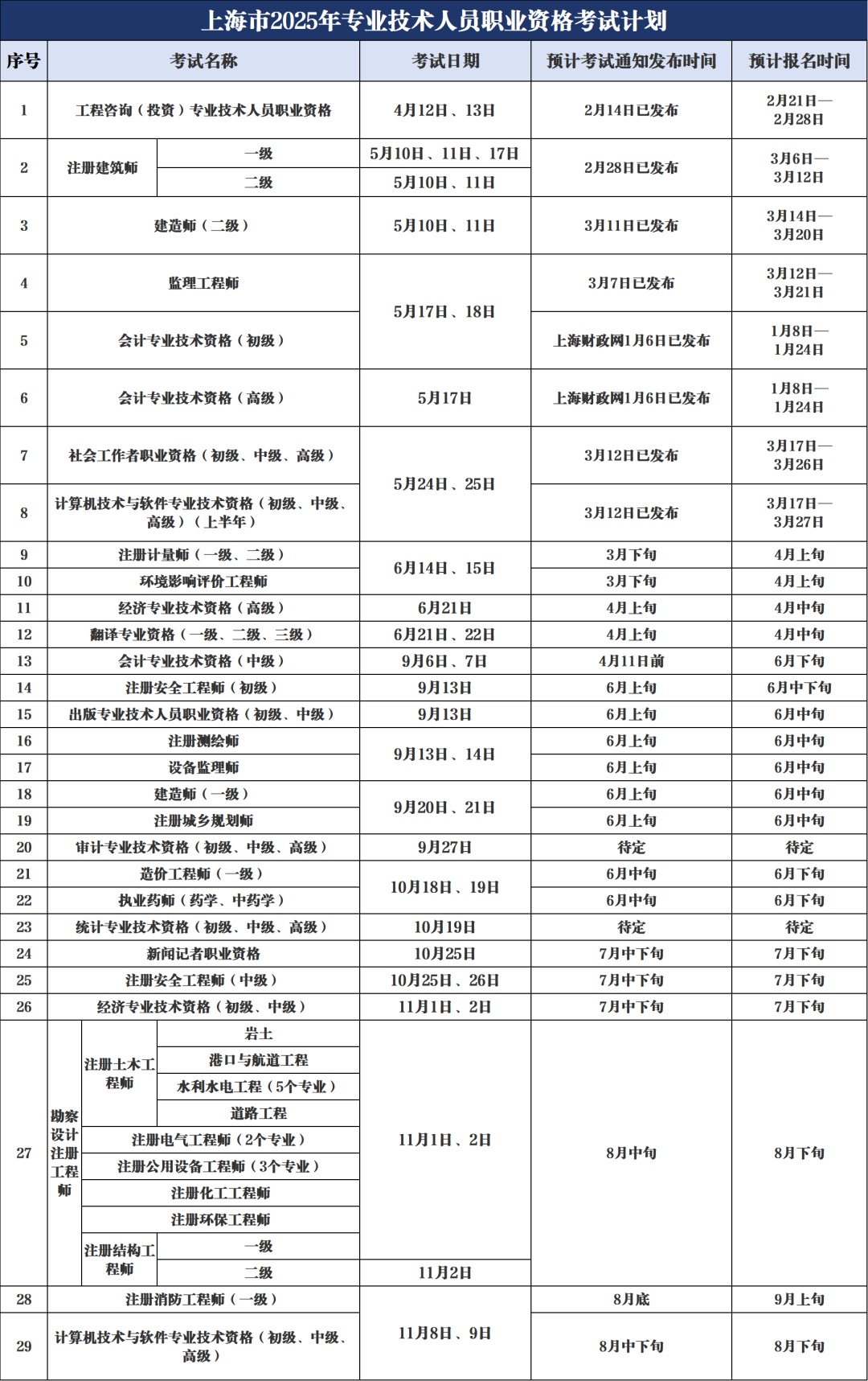 本市2025年专业技术人员职业资格考试计划正式发布!快来看看你的考试时间安排,提前规划,稳步备考!