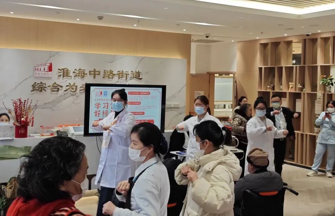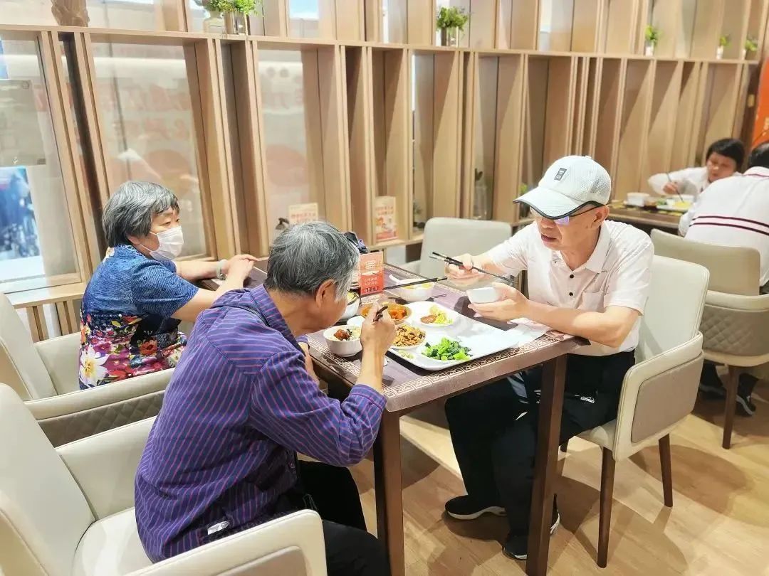 在“淮海家·零距离家园”的对面,是淮海中路街道和慧享福康养集团联合建设的养老设施,其1层是淮海中路街道综合为老服务中心,2~5层为慧享福·福荟颐养院,内设社区食堂、日托中心、中医理疗、文养中心、健康小屋、便民驿站、红色走廊等功能区,提供政策咨询、健康理疗、适老养老等全方位民生服务。其中一层的社区食堂颇受周边老年人和上班族的欢迎,每到中午便座无虚席。