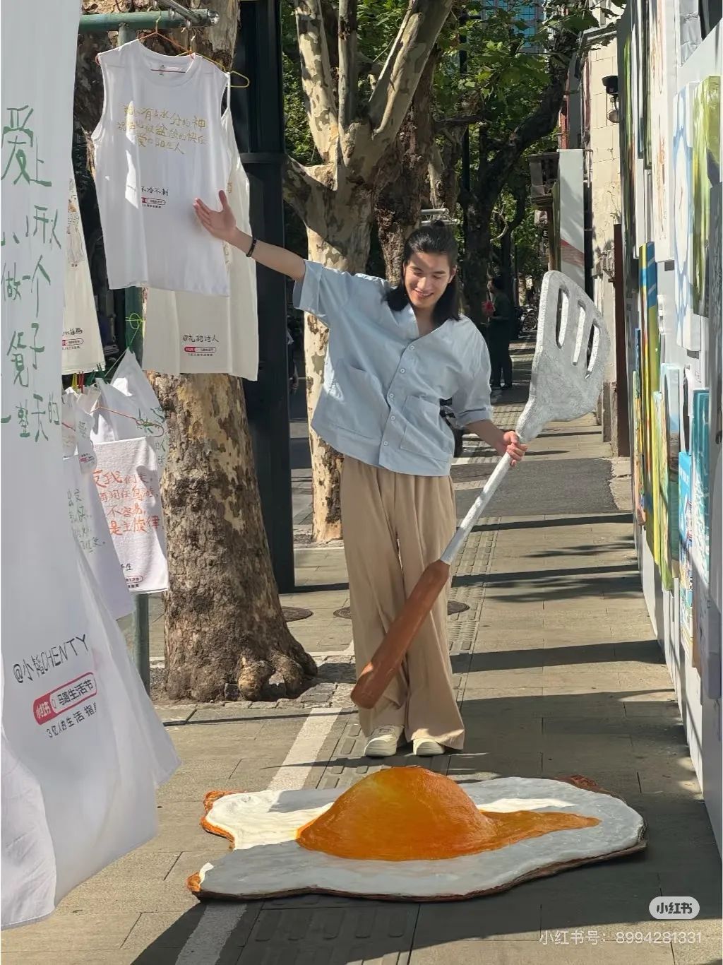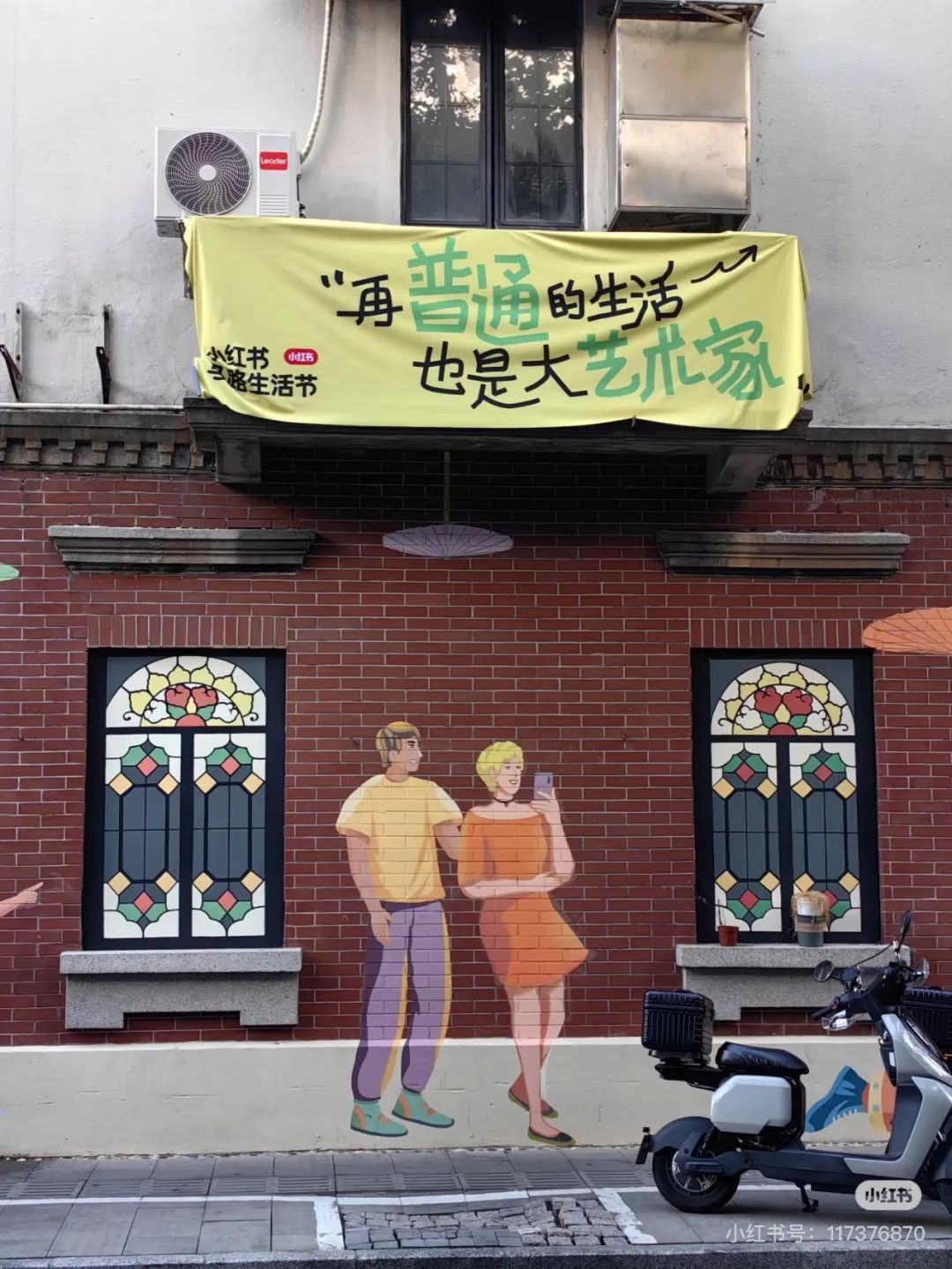 有了前一年合作的良好基础,在2024年小红书第二届马路生活节上,小红书主动选择了淡水路,将它变身成为“发光小马路”。经过一系列的视觉设计和活动策划,沿线布满了可爱有趣的涂鸦和艺术装置,消费者不仅能购买到心仪的商品,更能通过集章打卡等活动与小店店主互动。在提升淡水路知名度、增加小店营业额的同时,更是创造了与众不同的消费场景、提供了多样化的消费体验,实现了运营方、消费者、商铺、居民等多主体的共赢。