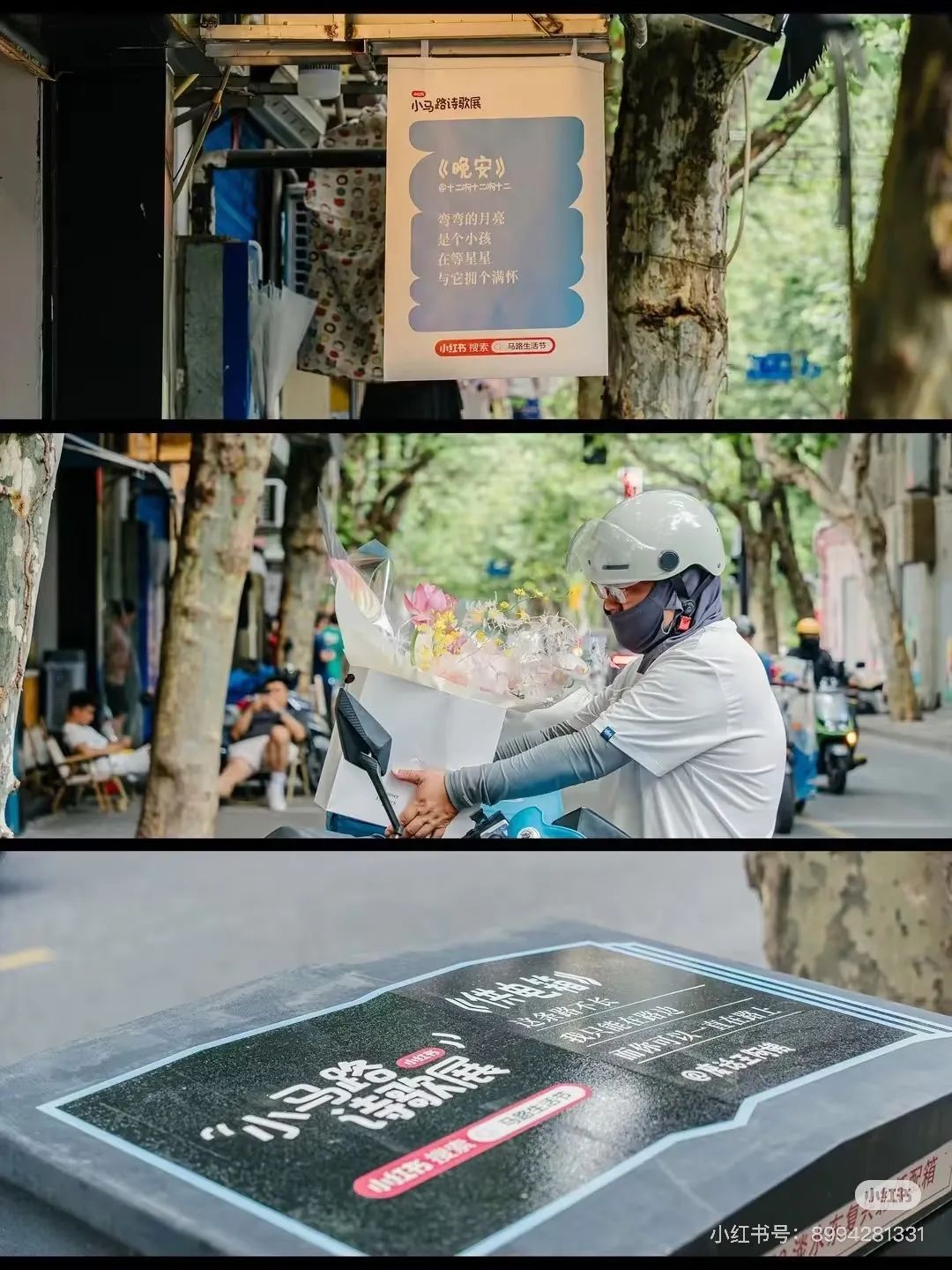 更新改造后的小马路和小店在品质上有了很大提升,但对它们的了解和使用多限于周边的居民,慕名而来的游客依然寥寥。怎么才能让更多的人发现这些有趣的小店呢?2023年,淮海中路街道相关负责人得知街道内企业小红书要在黄浦区举办“马路生活节”,便抓住机遇,将淡水路推荐给活动主办方。经过多轮讨论和争取,小红书决定将淡水路纳入活动当中,以“诗歌刷街”的形式开展活动。