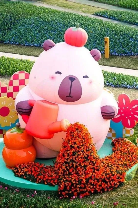 在动物主题户外艺术展,你可以遇见14米的巨型非洲“长颈鹿”,软糯的亚洲“大熊猫”,呆萌的美洲“卡皮巴拉”,还有松弛的澳大利亚“考拉”。