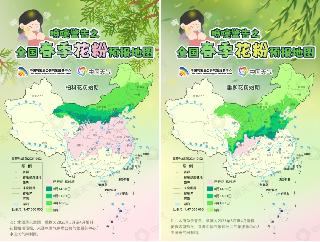 据中国天气网消息,未来一周,北京、天津、河北中部、内蒙古西南部、山西中部、陕西北部、甘肃北部等地将进入柏科花粉期;河北南部、山东南部、山西南部、陕西南部、甘肃南部、四川西部等地将进入垂柳花粉期。