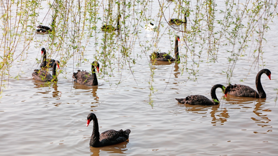 在上海野生动物园,湖边的柳树已经爆出嫩芽,粉嫩的花儿开得星星点点,春日风光无限。