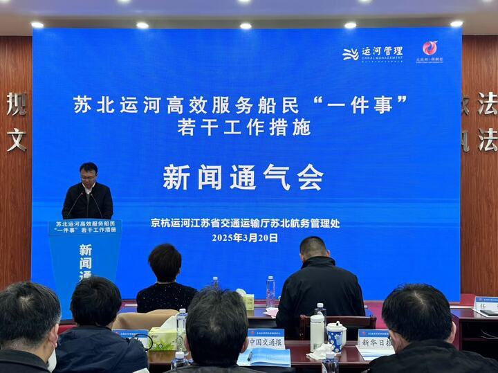 交汇点讯 3月20日,苏北运河高效服务船民“一件事”若干举措新闻通气会在徐州召开。现场,发布《苏北运河高效服务船民“一件事”若干工作措施》。