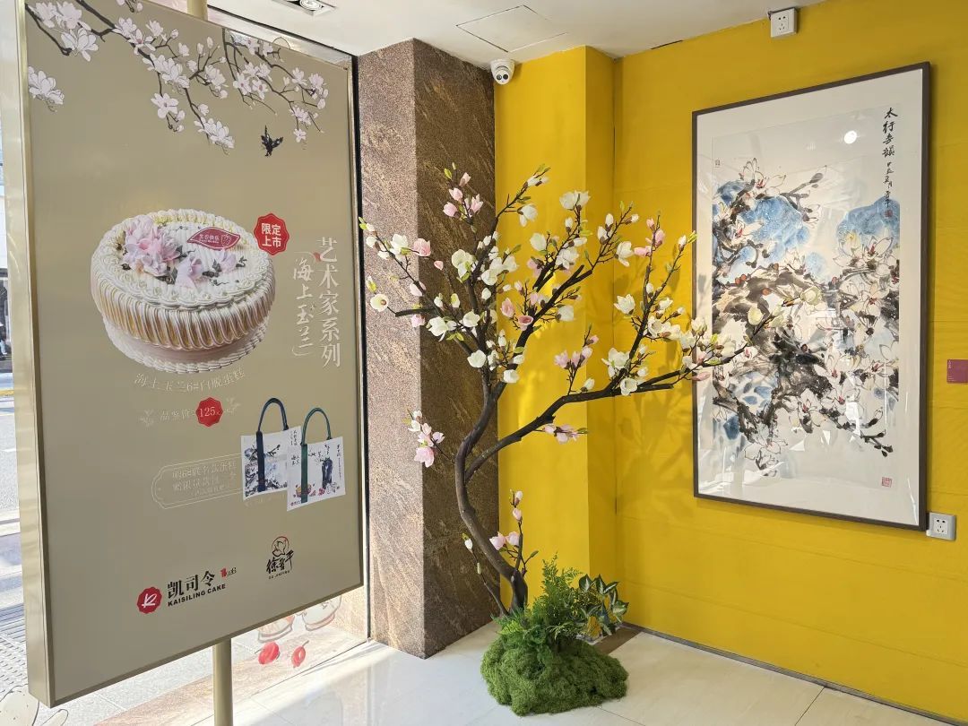 联名画作则以独特笔触在宣纸上勾勒出玉兰花,将凯司令蛋糕元素融入其中,完成传统与现代、自然与美食的一次奇妙对话。