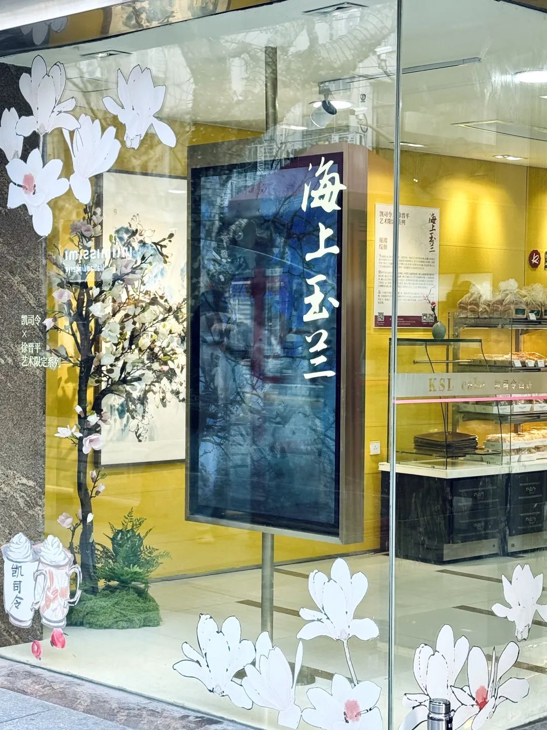玉兰花盛放的这个季节,南京西路春光明媚,老字号西点品牌凯司令的门店橱窗内,一场传统与艺术的对话正悄然绽放——静安老字号凯司令以上海市花白玉兰为灵感,携手当代知名画家徐晋平,跨界推出春日艺术限定款蛋糕西点,近日已正式上市。
