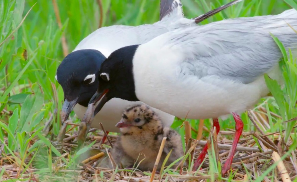 黑嘴鸥是鸟类界的“精致妈妈”。它们捕到鱼后,不会直接喂给幼鸟,而是先吞进肚子里,半消化后再吐出来,一点一点喂给幼鸟。这种“精养”方式虽然保证了食物的易消化性,但也让黑嘴鸥的育儿过程变得异常耗时耗力。