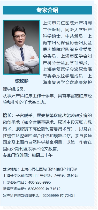 · 手术治疗: 针对中、重度尿失禁,如经阴道尿道中段无张力悬吊术等微创手术,可有效修复盆底结构。该手术可以做到日间手术,即当日住院,当日手术,当日出院。该手术治疗压力性尿失禁,治愈率达98~99%。
