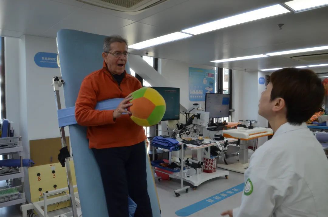 于海艳告诉记者,经过三四个月的治疗,目前,患者能够做一些简单的有氧训练、有氧操,手指精细活动有所改善,可以自己进食,在状态好的情况下,能够站立行走,日常生活自理能力得到提升。
