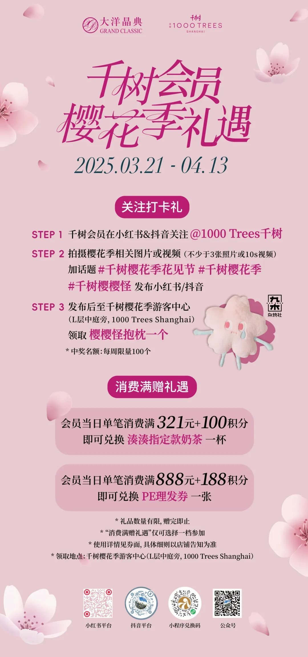阳春三月,上海大洋晶典·天安千树打造“千树樱花季·花见节”于3月21日正式启幕。900米滨河樱花长廊次第绽放,魔都独家首发游船赏樱专线,六大亮点市集活动串联苏河水岸风情,更有层层露台赏樱点等多重隐藏玩法等你解锁。