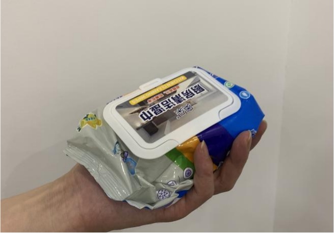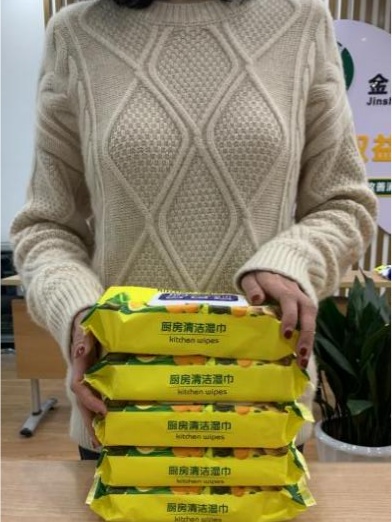 案例1:在多多直播平台的“爱肤佳福瑞通达专卖店”引流视频中,5包厨房清洁湿巾被展示得又大又高,长度看似有两肩宽,但实际收到商品后,消费者却发现商品明显“缩水”。当体察员就此问题询问店铺客服时,商家仅简单回复:“是这样的”。
