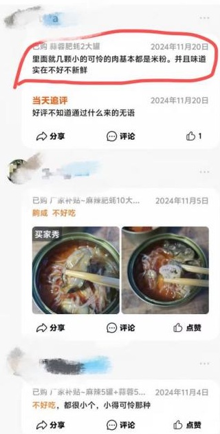 部分消费者差评截图