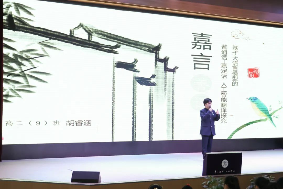 “现在几点了”用嘉定话怎么说?将内容输入进“嘉言善译”系统中,“啥辰光了阿”立马出现在界面上……这是3月19日举行的嘉定一中第二届嘉懿科学论坛上发生的一幕。 现场,高二学子共带来9项课题,涉及计算机与人工智能、环境工程、人文社科三大领域,来自上海光机所、上海交通大学、华东师范大学等院所的专家学者对课题进行点评指导。 “我不想若干年后回到家乡,乡音也改,鬓毛也衰!”讲演现场,高二(9)班学生胡睿涵带来课题《嘉言善译:基于大语言模型的普通话-嘉定话人工智能翻译探究》,他用脱口秀的方式分享了自己的研究内容,时不时赢得现场的笑声和掌声。 作为土生土长的嘉定小囡,胡睿涵是讲着嘉定话长大的。但他了解到,和其他吴语区方言相比,嘉定话传承现状并不理想,甚至身边很多同学都听不懂。 经过8个月的研究,他深入了解语言学,并将嘉定话的语根和语法结构系统收集整理,设计了一款翻译系统。目前,该系统已经可以做到嘉定话和普通话文本双向翻译。 “我希望能通过我的研究,把嘉定话的读音和语法都完完整整地传承下去。”胡睿涵表示,他计划继续完善“嘉言善译”系统,加入语音转译功能,并考虑研究开发手机软件,让翻译功能更加强大。 高二(4)班学生肖婕带来《基于AI绘画的旧工业建筑外立面再生设计改造》课题,灵感也来自对日常生活的观察:“我对城市改造和更新很感兴趣,比如我们嘉定的韩天衡美术馆的建筑设计,就保留了原工厂的‘工业硬核’的一面,所以我想让更多旧工业建筑焕发新的生机。” 另外,学生们还带来《多功能应急排水井盖设计》《不会湿的座椅》《上海地铁行李寄存柜投放》等多样化课题。除了创新的课题思路,和以往相比,几乎所有学生都采用了AI技术协助完善课题。“利用AI尝试搭建的绘画模型确实给到我不少帮助,不过在实践中,我也发现AI存在局限,也给了我研究思考的新方向。”肖婕分享道。 创意满满、脑洞大开,又具备可实践性,嘉一中学子的课题赢得导师们的连连点赞。“科研需要创新性的、非同寻常的思维,现场同学们的课题都很好地体现了创新性的思维,并且已经具备不错的基础科研能力。”华东师范大学民俗学研究所教授田兆元表示。 嘉定一中课程发展部主任秦汉介绍,目前学校已经形成了完善的科学教育体系,通过“院士大讲堂”“校友讲坛”等普适性课程,以及多种科学类选修课程、科创研学等活动,让学生内心深处厚植科学报国的种子,激发他们的想象力、好奇心和探索欲。