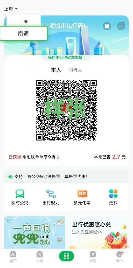 上海市民参观完南通美术馆后,还可通过“随申行”APP一键切换至“南通交通一码通”,直接扫码乘坐南通市内公共交通,轻松游览狼山风景区、濠河历史文化街区、南通植物园等热门景点。APP内还支持查询南通市的地铁实时位置、首末班车时间等信息,出行更便捷!