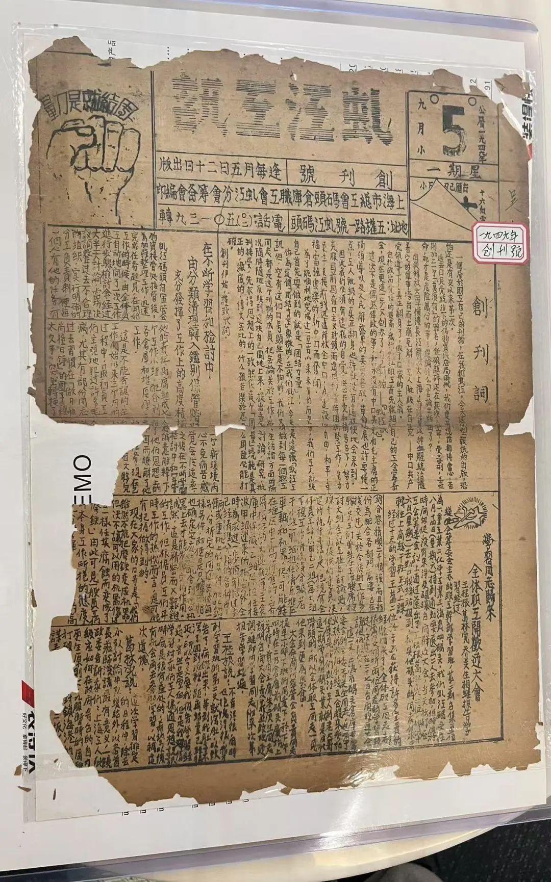 2025年,是中华全国总工会和上海总工会成立100周年。作为中国工人运动发源地,上海留下了丰富的工运遗址和史料。让我们一起以“寻找工会传家宝”为题,追溯百年工会峥嵘岁月…… 宝物由来 《劳动报》热心读者蔡先生,在看到报纸上刊登的“工会传家宝”栏目以及宝山里2号即将修缮完成开始布展的新闻后,内心非常激动。多年来,他也收藏了不少展现工会峥嵘岁月的老物件。 近日,蔡先生带着他珍藏的史料来到报社,首次对外界展示这些难得一见的“工会传家宝”,迫不及待地讲述了背后的故事。 △蔡先生珍藏的罕见史料 一本泛黄日记: 记录1949年参与五卅纪念活动现场 蔡先生小心翼翼地拿出一本封面写着“练习簿”的泛黄小本告诉记者:“这里面的文字,越看越有内容,完全是一座史料的宝库。” 这本日记来自于名为伍洪兴的老先生。在扉页上,伍老书写了自己的“简历”:1928年出生,1936年逃难至上海,1944年第一份工作是洗碗,1946年进入当时的邮政储金汇业局,并在同年于青年会读书。1949年,进入人民银行工作。 △伍洪兴日记扉页 日记中,他通过一整页详细描述了自己在1949年5月31日参加上海纪念五卅运动的活动。虽然因为年代久远、笔迹有些潦草,部分内容很难辨识,但大部分内容清晰明确。伍老写道,自己作为当时邮政储金汇业局出纳课的职工,有幸代表公司参与这次纪念大会。“当我第一次看到陈毅市长,心确实跳动不止,陈毅市长有力的讲话,让我知道解放上海是人民解放军又一次重大的胜利。”日记中,伍老还透露,自己是在这次大会中,了解到五卅惨案曾经带给中国工人阶级的痛苦和压迫。 △伍洪兴日记中 关于上海纪念五卅运动活动的记载 通过查阅相关史料可以得知,在1949年5月31日,上海百万职工代表在大光明电影院举行了纪念五卅、庆祝解放的盛大集会。当天,到会的工人代表达2300多人。陈毅在讲话时,第一句是:“上海的工人老大哥、老大姐们,我们归队了!”工人代表们听了倍感亲切,报以热烈掌声。 陈毅在讲话中指出:“上海解放是上海有史以来的伟大历史变革,已经成为国家主人地位的工人阶级要有远大的眼光和伟大气魄,来领导新民主主义社会的经济建设和政治建设,而不是只看到眼前的狭小利益。”他还号召工人们带头行动起来,克服暂时困难,积极维护好社会秩序和恢复生产。 可以说,伍老的这本日记,从一个普通职工参与者的视角反映出在1949年5月31日这天,全上海工人代表团结协作奋发激昂的精神状态。 一张工人自办报纸: 《虬江工讯》创刊号原件弥足珍贵 蔡先生还拿出了一份颇为罕见的《虬江工讯》,这份报刊已经有些残缺,目前已被他塑封起来进行保存。据了解,《虬江工讯》是当时上海市总工会码头仓库职工会虬江分会职工自发创立的一份工人报纸。在这份1949年5月的创刊号上,手绘的拳头图案,团结就是力量的标语紧紧围绕四周,那种工人报纸的力量感、朴实感扑面而来。 △《虬江工讯》创刊号 《虬江工讯》的创刊词中写道:“国民党的血腥统治随着它的垮台而土崩瓦解,工人阶级在中国共产党的领导下,真正翻身做了国家的主人翁。由于政治觉悟的提高,我们虬江职工首先就组织了自己的工会筹备会,现在更进一步创办了自己的刊物。” 值得一提的是,在1925年五卅惨案发生的当晚,中共中央召开紧急会议,决定进一步扩大反帝运动。当晚,上海总工会筹备会便是在虬江路的广东会馆召开各工会联席会议,决定正式成立上海总工会。次日,上海总工会在宝山路2号挂牌公开办公。 目前,互联网上关于这张报纸的信息几乎没有任何可以参考的内容,蔡清生所收藏的这张创刊号原件,在当下显得更为弥足珍贵。 当蔡先生得知五卅运动初期上海总工会遗址正完成修缮并将举行相关展陈时,他希望自己收藏的这些内容可以起到丰富展品之功用,“这是来自普通百姓、当时一线工人最真实和珍贵的史料。我相信,这些史料可以丰富展陈,也能让更多人了解这些工运先驱的奋斗足迹。”