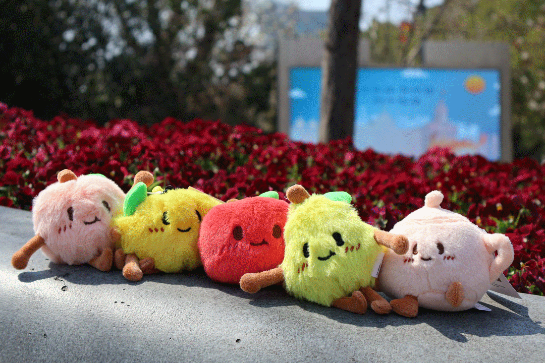 B套装:“糖缸、梨和桌布”系列毛绒挂件1个,木质冰箱贴1个