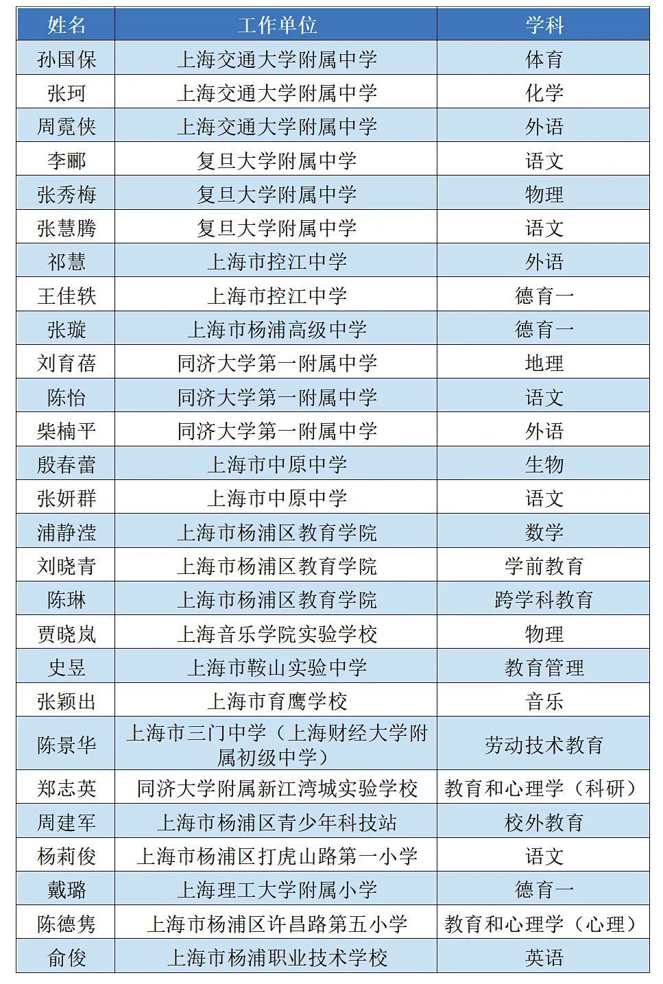 杨浦区2024年中小学(中职)正高级教师职称评审通过人员名单