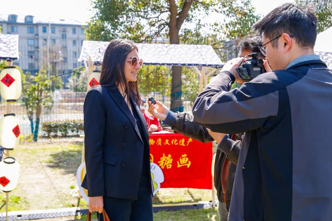 在前往小昆山镇的路上,白乐潍透过车窗看到了遍地的油菜花和美人梅,这是独属于万亩良田的春日浪漫。“特别开心能来到户外,我看到田里开满了鲜花,特别美丽。”令记者意外的是,白乐潍似乎对中国传统节气颇为了解。“而且今天是春分后的第一天,很有纪念意义,我以后还会再回来这里。”兴奋之余,她掏出手机拍起了蔚蓝的天空。